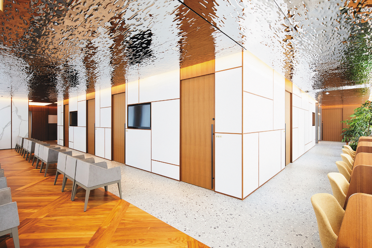 院内にはフリーWi‐Fi、電源コンセント付きのワークスペースも完備。 また、順番がきたら専用アプリで通知してくれる制度もあるので、検査結果が出るまでの時間を利用して院内で待たず買い物などを済ませることもできます。