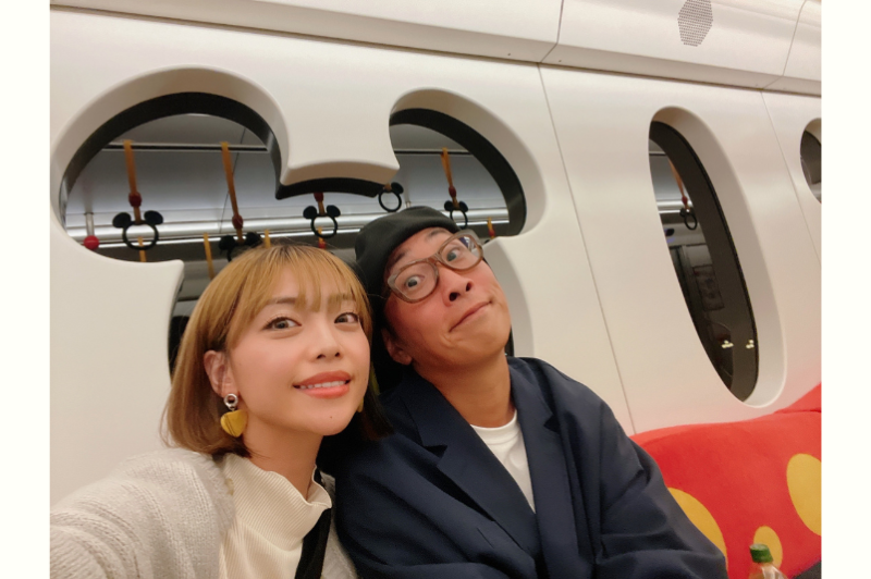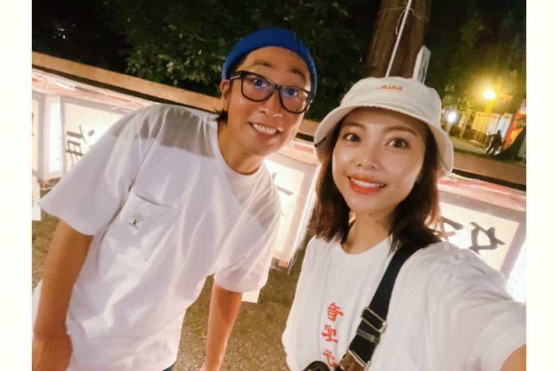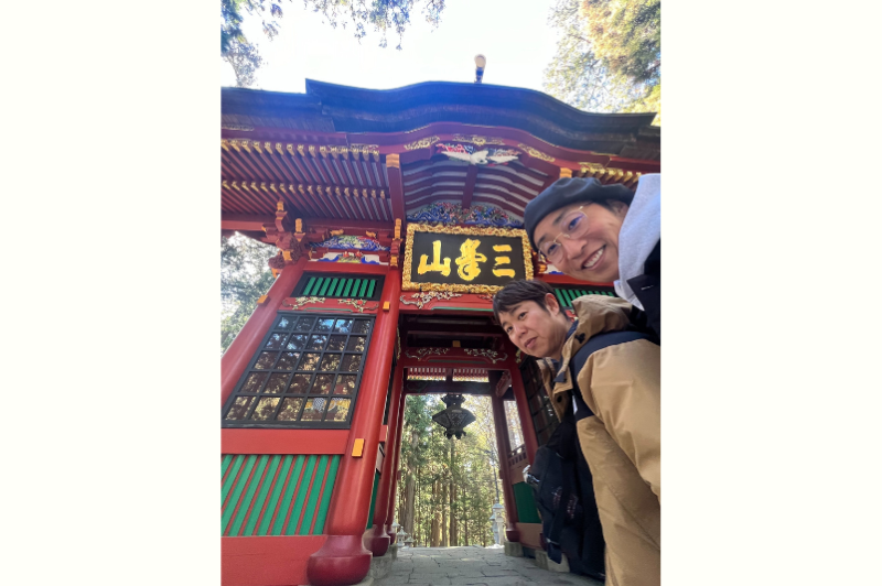 夫から送られてきた、埼玉県の秩父にあるパワースポット「三峯神社」の写真。お笑いコンビ「響」の小林さんとゆってぃの2ショット。
