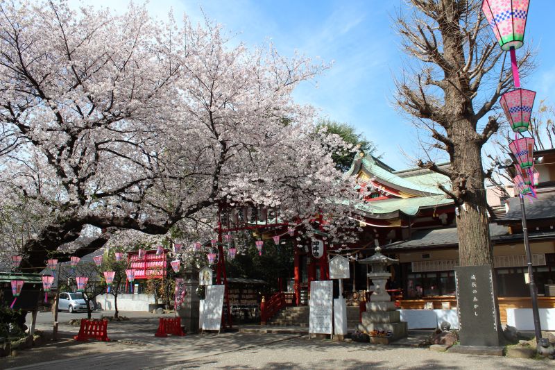 今から800年前の鎌倉時代に創建されたと伝えられる神社。現在の優美な社殿は、都内では唯一の浅間造りです。主祭神は木花咲耶姫命(このはなさくやひめのみこと)。木花咲耶姫命は炎の中で出産したといわれ、家庭円満・安産・子安の神様として信仰されています。