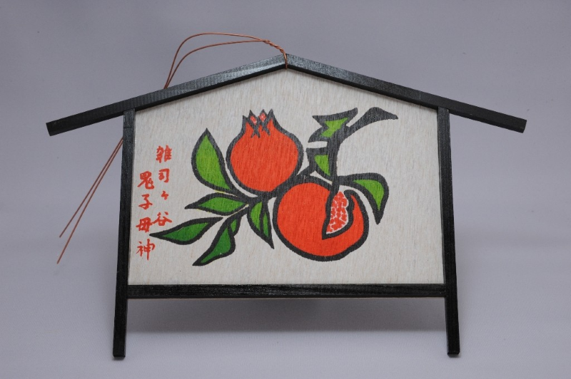 有名な「ざくろ絵馬」。たくさんの種実を内包することから子孫繁栄の象徴として、ざくろがモチーフに。