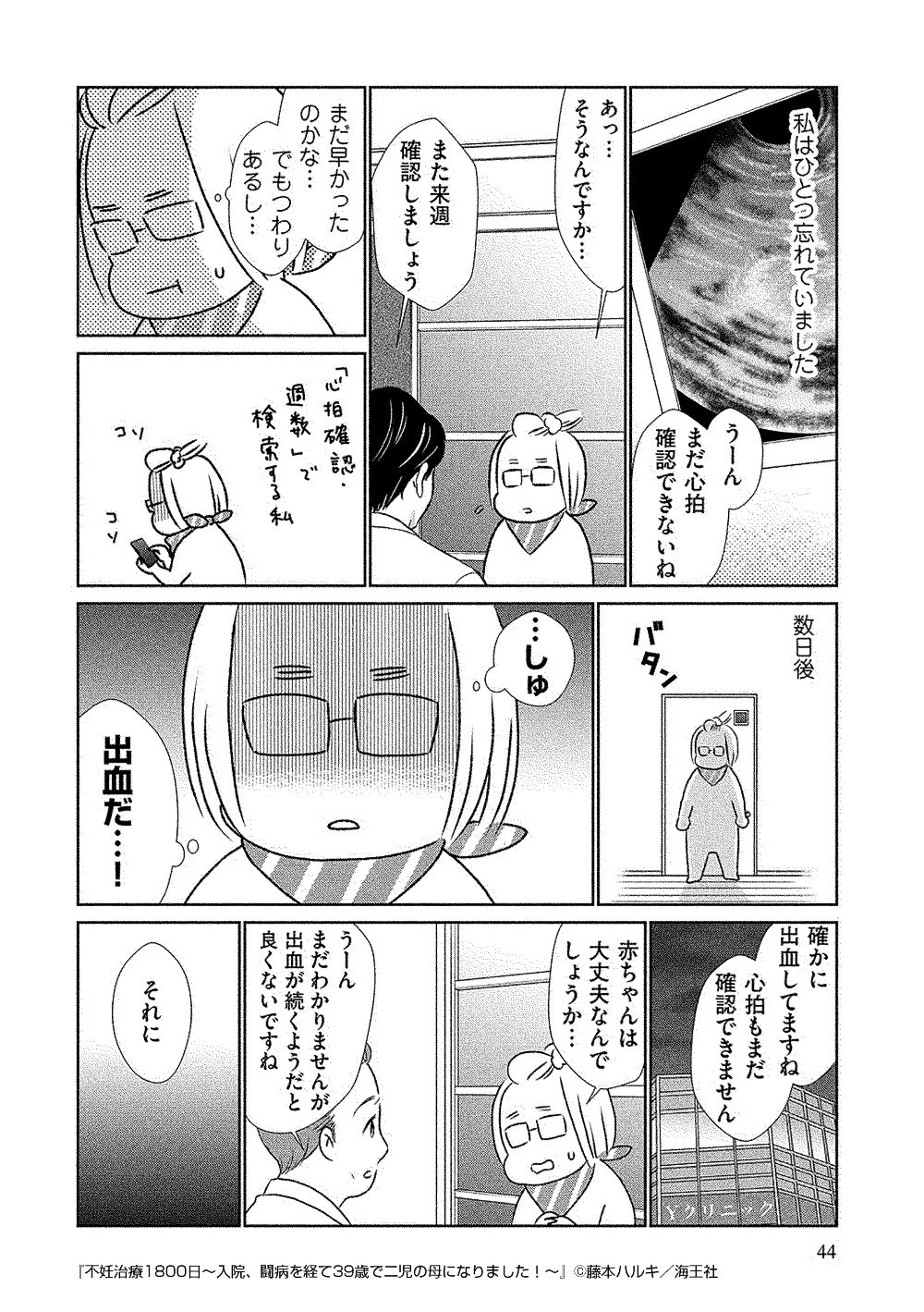 出血、流産の疑い…つわりの症状があるのに?【不妊治療1800日~入院、闘病を経て39歳で二児の母になりました!~】⑫