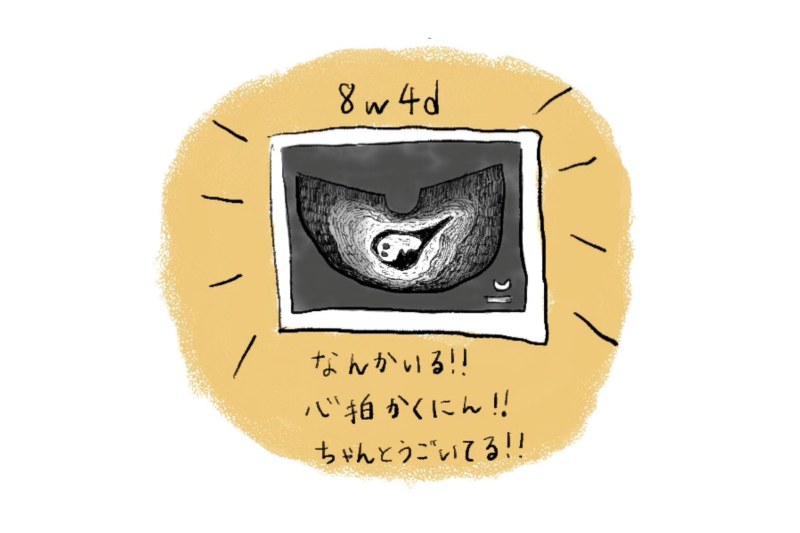 8週4日目。なんか動いてる!モニターで心拍を確認したときは、このおなかに本当に生命が宿っているんだなーと、感動しました。