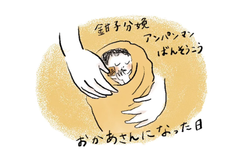 無痛分娩のはずが、麻酔科医の出勤まで12時間陣痛に耐え、最後は鉗子で引っぱって出産。ほっぺに鉗子のあとがついていて、アンパンマンのばんそうこうを貼ってもらいました。