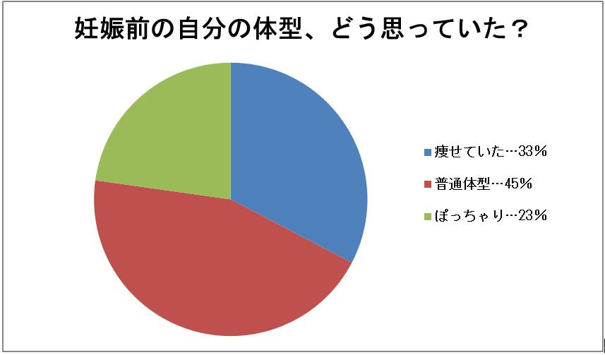 普通体型だった、と感じていた人がおよそ半数。続いて痩せていた、ぽっちゃり、と続きます。チラホラ聞かれたのは、「妊娠前は痩せていたのに…」という声。
