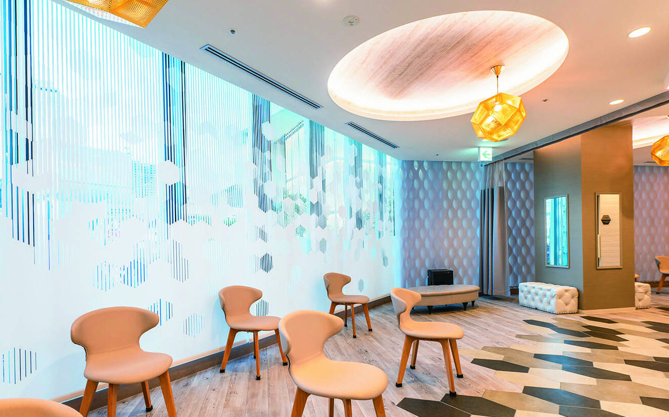 渋谷公園通りを見晴らせるホテルロビーのような心地よさと広い待合室。