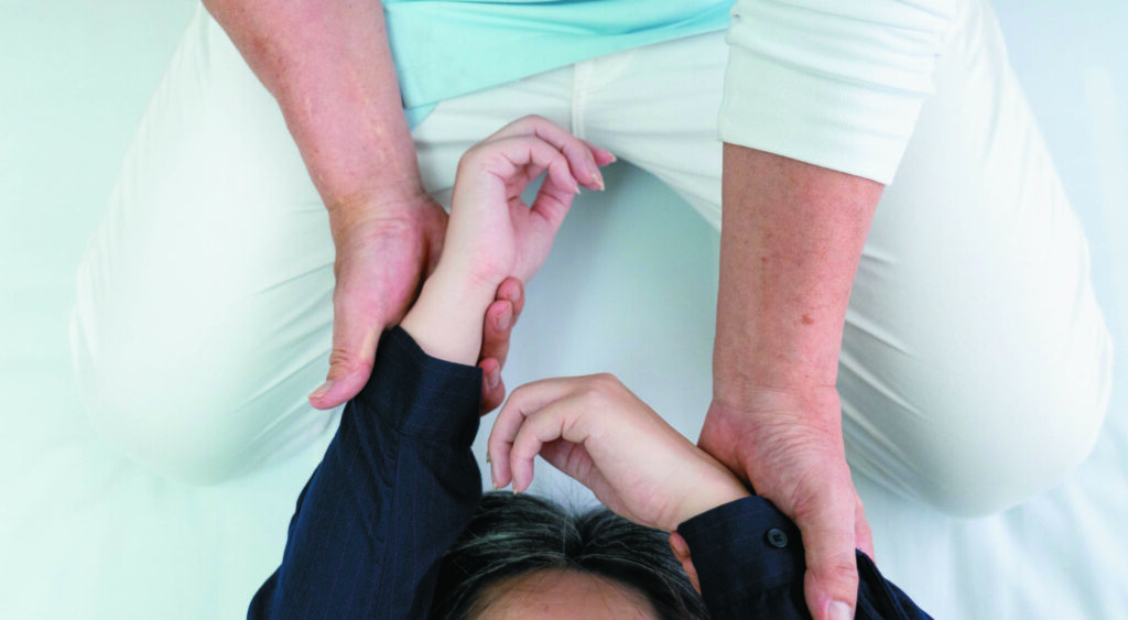 手足を軽く曲げたりゆすったりしながら左右のバランスをととのえます。痛みもなく、赤ちゃんから年配のかたまで受けられます。