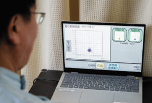 「重心動揺検査」では、重心のズレを確認します。健常率が100%近くあると、妊娠率も高くなる傾向にあります。