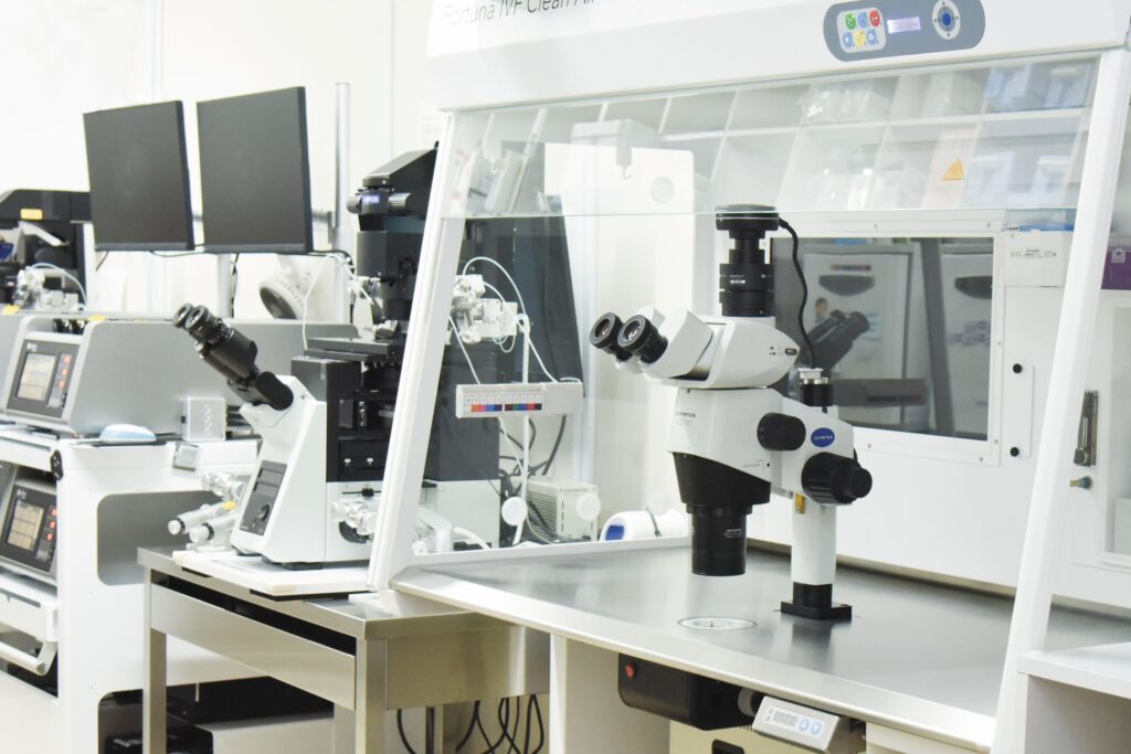 患者さんからお預かりした大事な受精卵に最適な環境にととのえられた培養室。高い専門性と豊富な経験をもつ培養士が、タイムラプスインキュベーターで24時間観察しています。