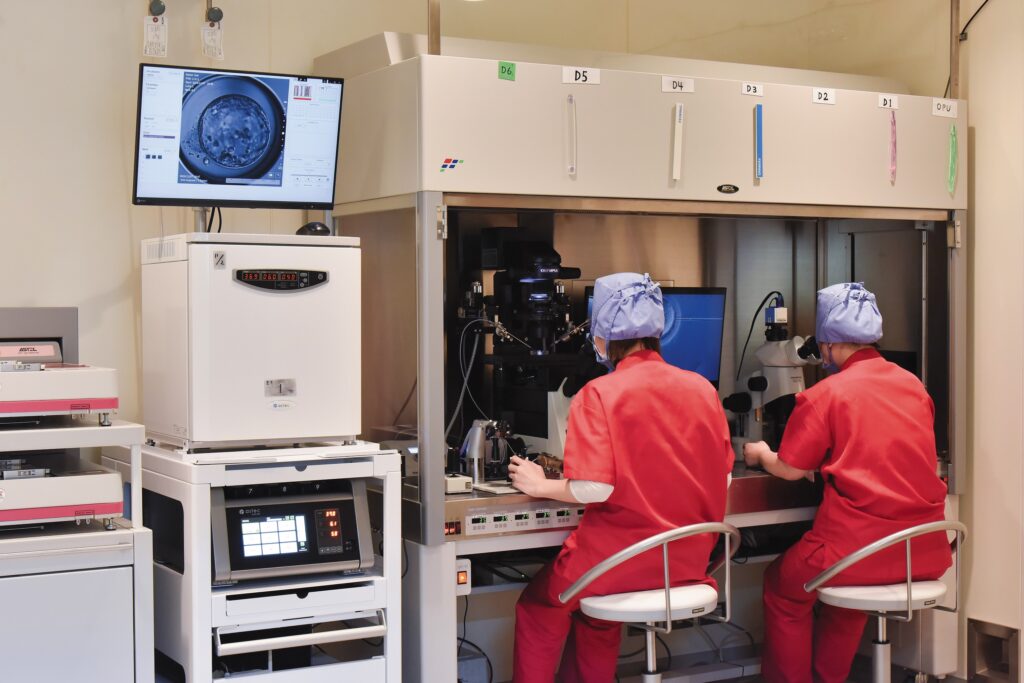 採卵した卵は、経験豊富な胚培養士が受精 から培養までを担当し、胚にとってストレス のない環境をととのえています。医師、培養士、看護師がそれぞれの持ち場 でベストを尽くし、チームの総合力で最短の ゴールをめざす。その中で、ご夫婦がお互い を支え合いながら、前向きに治療にとり組み、 ふたりのたいせつな赤ちゃんを胸に抱く日をたぐり寄せていく。