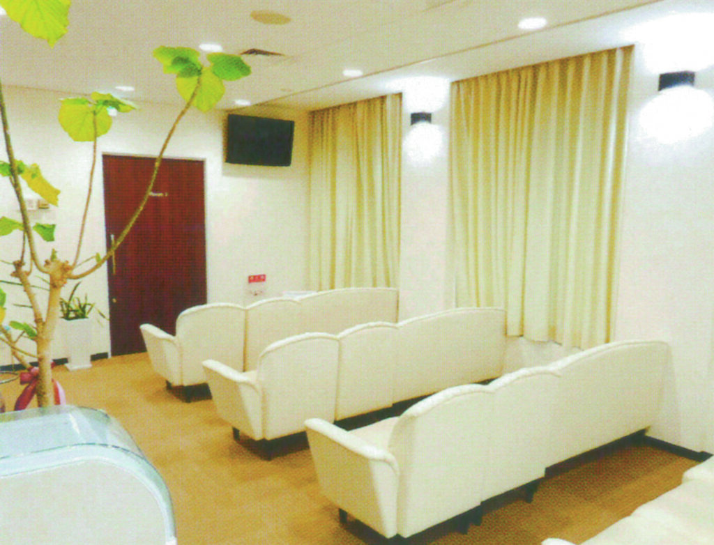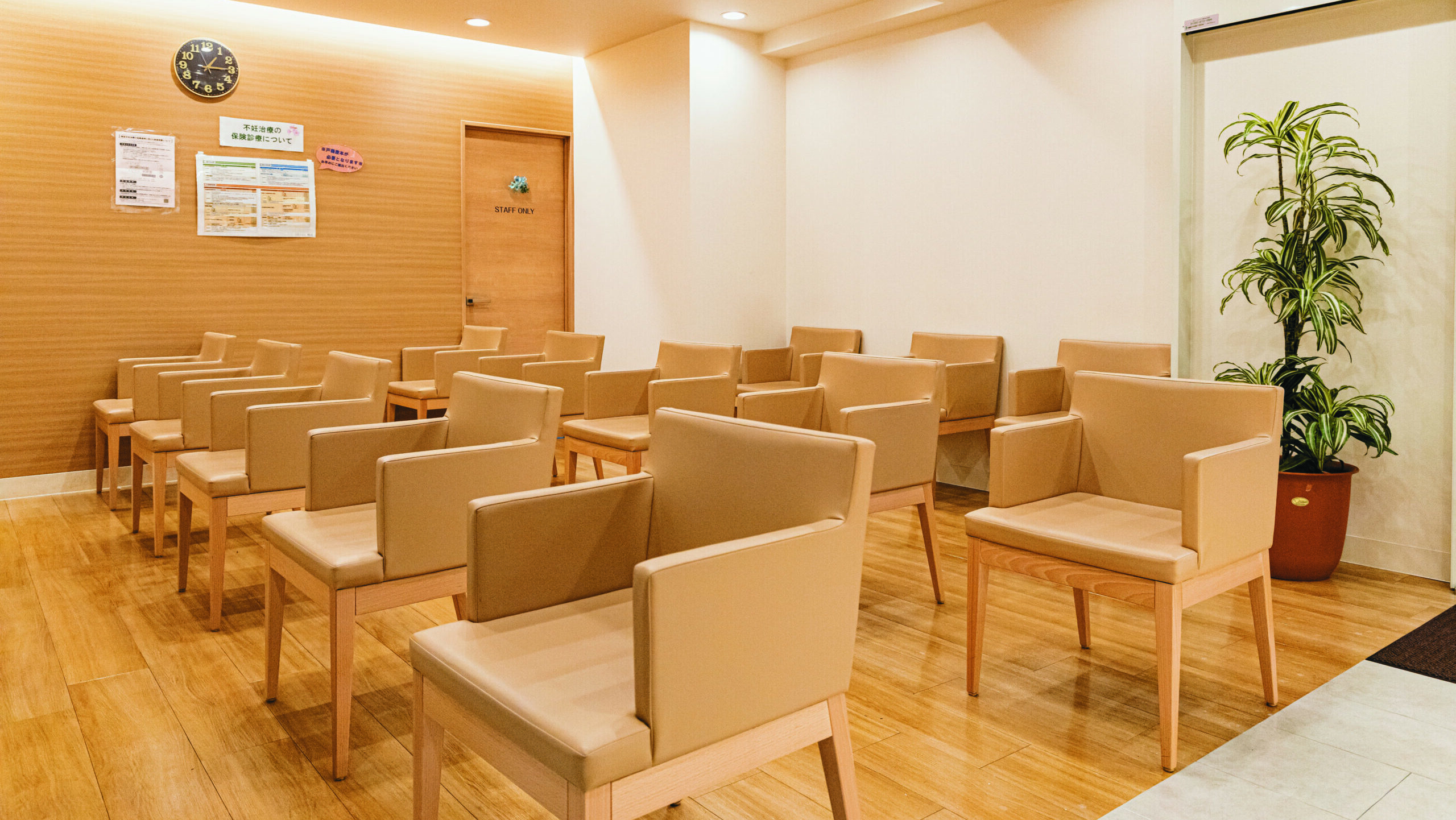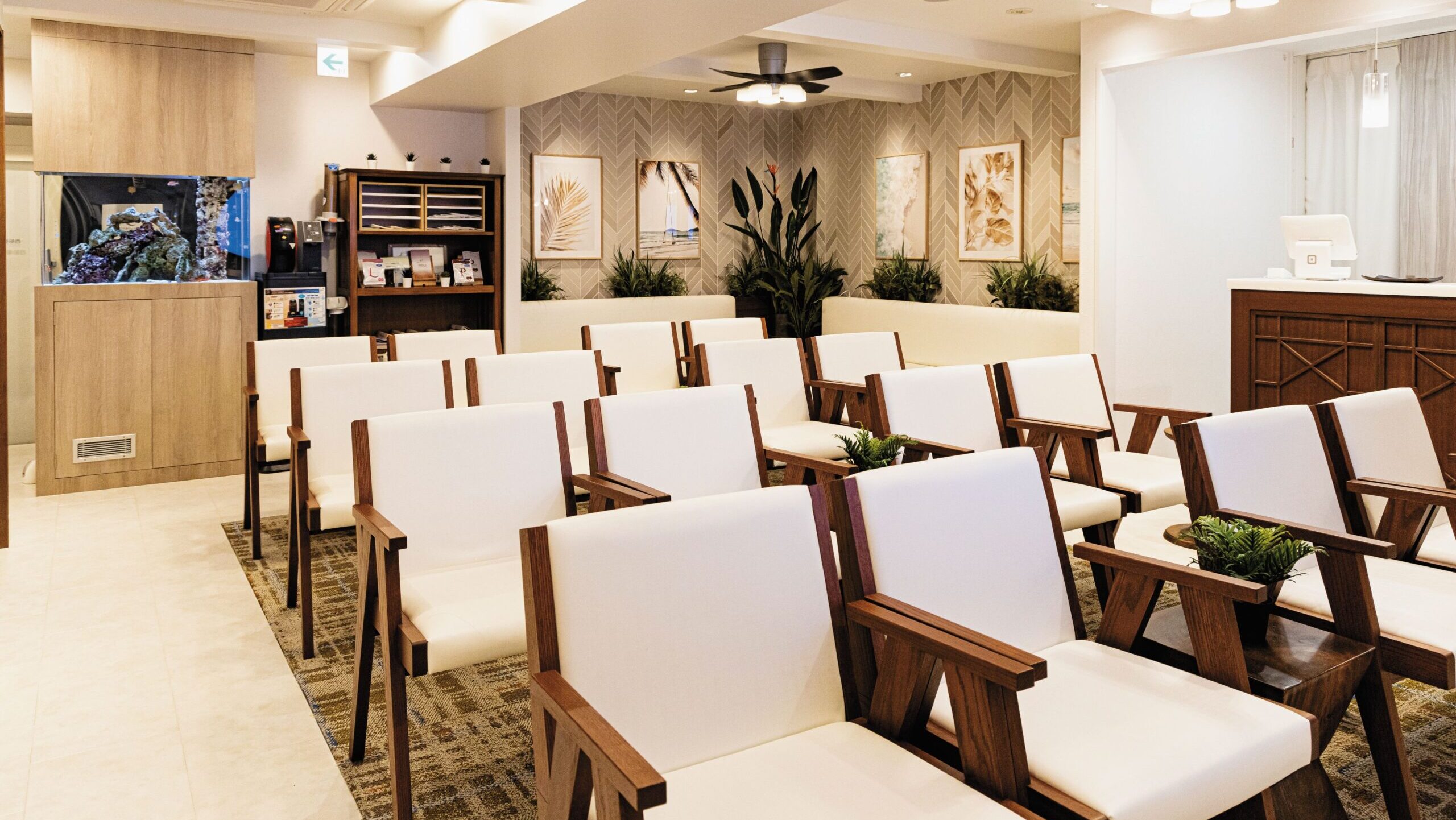 白を基調とした、明るい待合室。