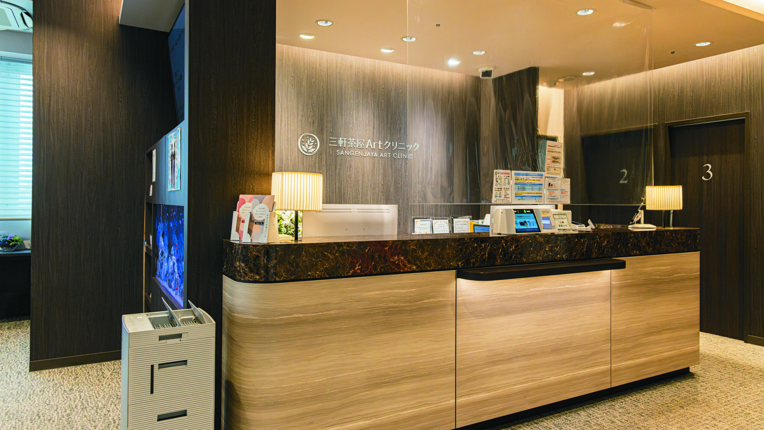 スタッフ一同、明るい笑顔で迎えてくれる受付。
