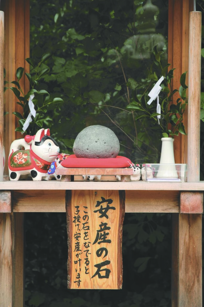 必ず立ち寄りたい「安産の石」。なでると子授けや安産のご利益が得られるといわれています。