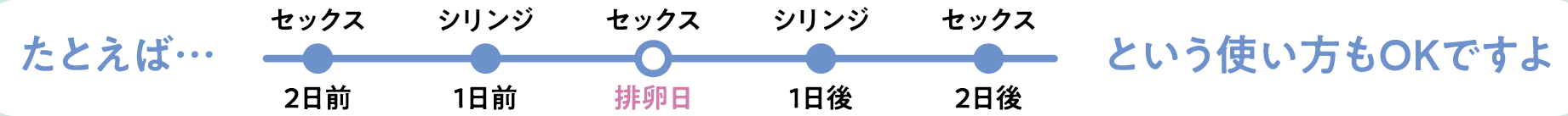 一般的に妊娠の確率が最も高くなるのは、排卵日の2日前といわれています。排卵日を正確に予測するのはむずかしいので、 排卵日当日とその2日前から2日後の計5日間、できるだけ多くタイミングをとるのが理想なんです。 ただ仕事で疲れていたり、プレッシャーに感じたりして、排卵日にセックスできないこともありますよね。シリンジ法なら、精液をシリンジで採取してそれを腟に注入するだけなので、タイミングを重ねやすいんです!
